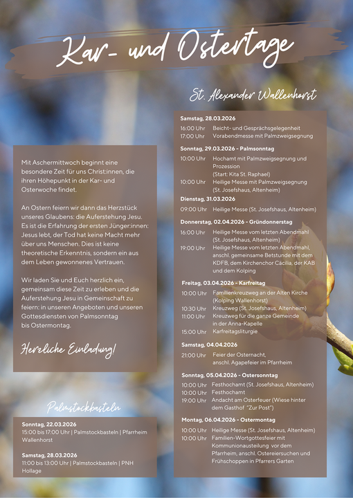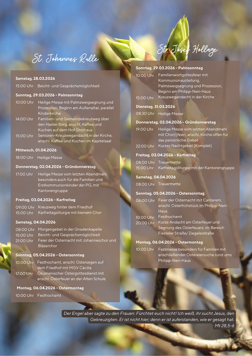 Angebote und Gottesdienste von Palmsonntag bis Ostern