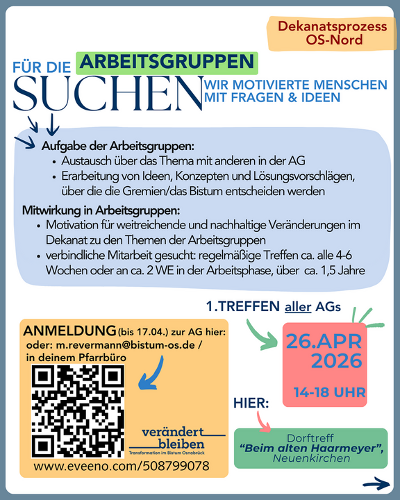 - Erarbeitung von Ideen, Konzepten und Lösungsvorschlägen, über die die Gremien/das Bistum entscheiden werden